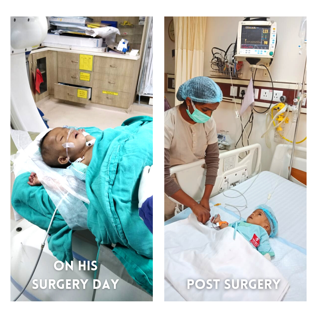 2020 has been a hard year for all of us, some families along with fighting the virus also had to fight many personal battles in various forms, this is one such story. In the perilous times of the pandemic, Sunil Kumar’s family was under tremendous pressure as they had lost their only means of livelihood until a ray of hope came into their lives. Anmol was born on the 20th of May 2020. This was when the pandemic had started moving towards its peak. 4 months into his birth, he was unwell due to cold and fever. During that time, when Anmol’s mother was feeding him one day, she found him uncomfortable, sweating, and his heart beating really fast. She was extremely worried and took Anmol to the nearest dispensary where the doctor informed them that Anmol was very sick and was diagnosed with Pneumonia. The doctors also told them that Anmol had Down syndrome. Down syndrome is a genetic disorder that causes developmental and intellectual delays. The doctor asked the parents to take him to Pushpanjali hospital situated in Agra. The doctors prescribed lots of medicines that helped Anmol. Anmol’s father had to spend around 15,000 for one day for his treatment and all the tests done. A team of doctors had come to Pushpanjali to treat the COVID 19 patients. Suspecting some cardiac issue, they suggested Anmol’s father take him to Sri Sathya Sai Sanjeevani Hospital in Palwal, Haryana. They did an Echocardiography test in the hospital. As the case seemed complicated, he was referred to AIIMS. He was confirmed with heart disease but the treatment date was not given and due to pandemics, things were getting difficult.