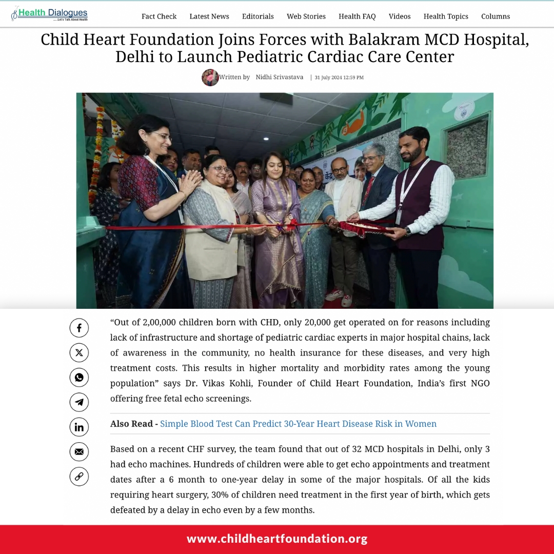 Child Heart Foundation Joins Forces with Balakram MCD Hospital, Delhi to Launch Pediatric Cardiac Care Center https://health.medicaldialogues.in/heart_health/child_heart_foundation_joins_forces_with_balakram_mcd_hospital_delhi_to_launch_pediatric_cardiac_care_center_132451