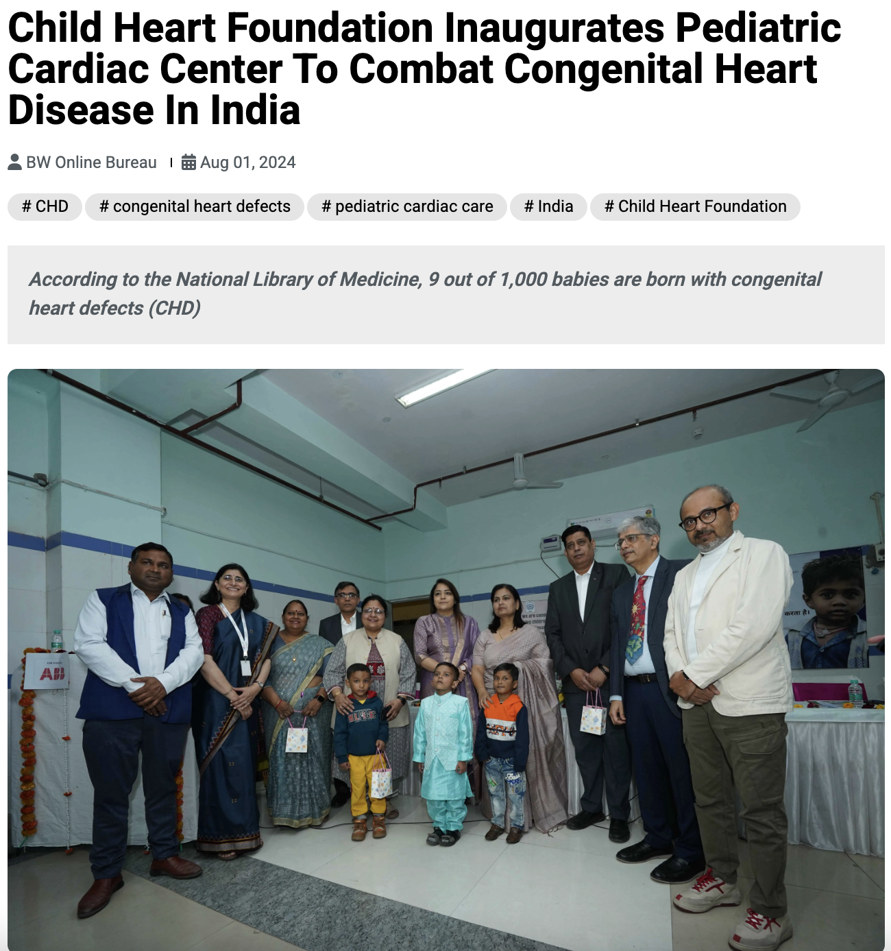 Child Heart Foundation Inaugurates Pediatric Cardiac Center To Combat Congenital Heart Disease In India