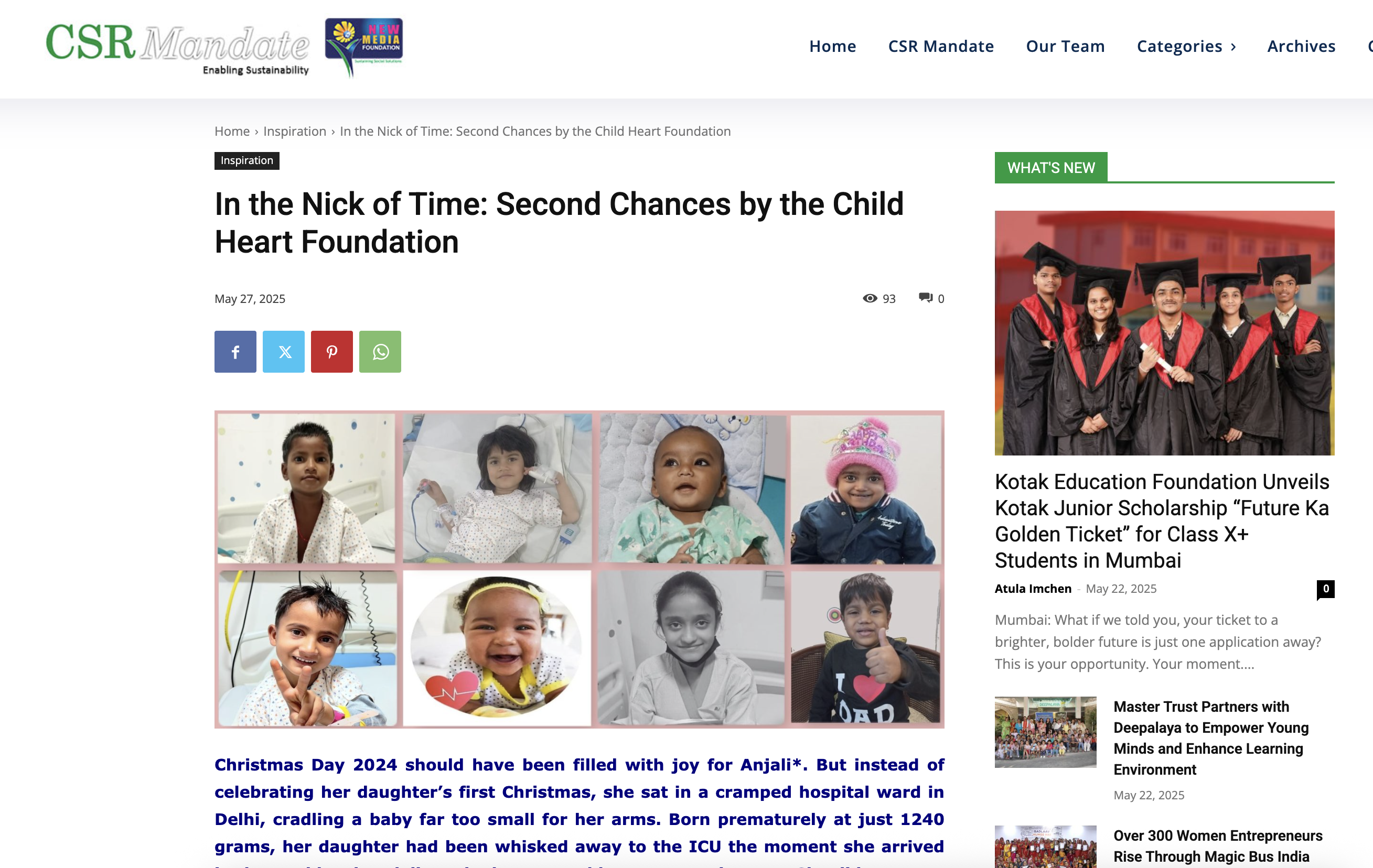In the Nick of Time: Second Chances by the Child Heart Foundation _ By CSR Mandate