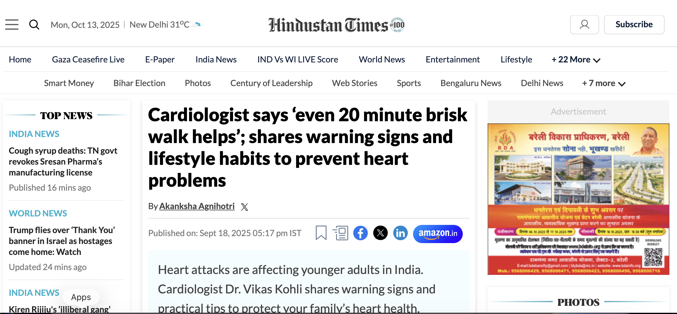 Cardiologist says ‘even 20 minute brisk walk helps’; shares warning signs and lifestyle habits to prevent heart problems